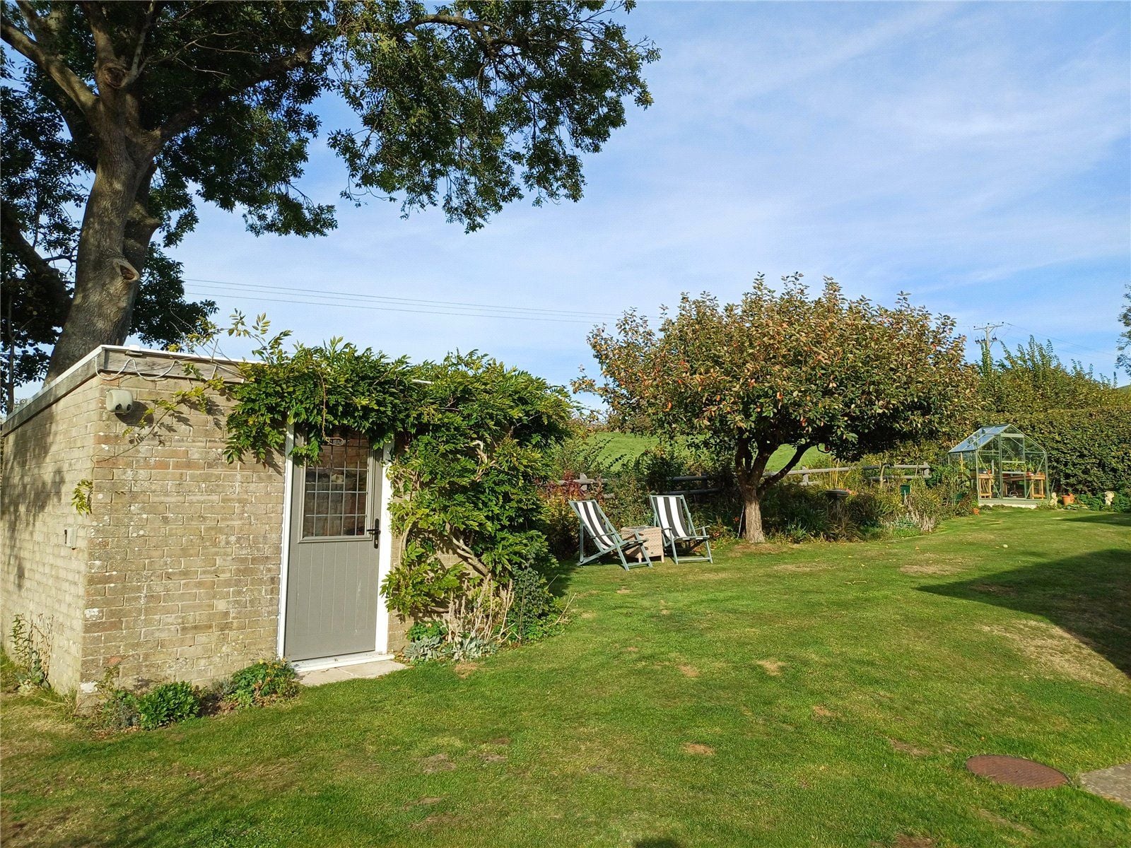 The rear gardens provide a further patio and lawns with a substantial brick-built studio/shed and greenhouse and there is a highly productive apple tree.