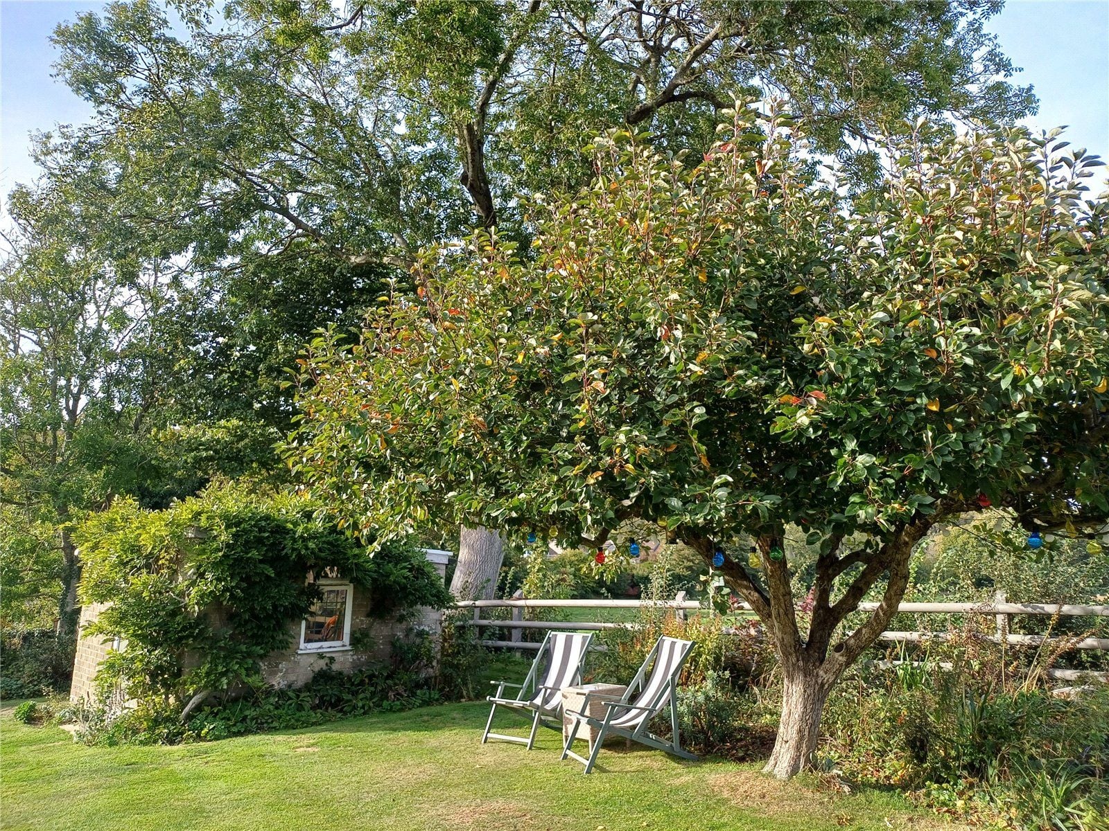 The gardens are wrap-around but extend mainly to the south and west with sun terrace, long lawns, established bushes and some specimen trees including an iconic monkey-tail tree.