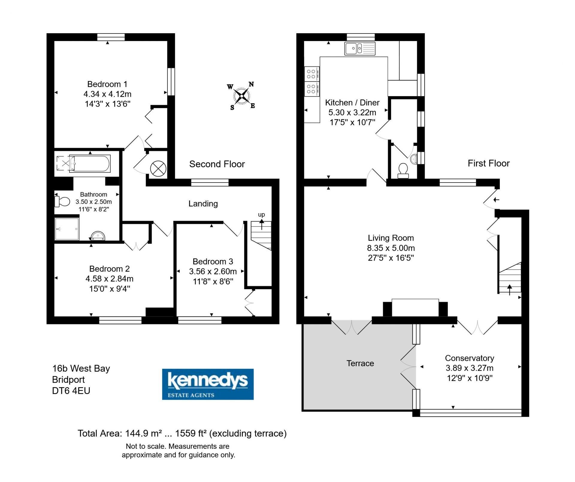 On the first floor is an entrance hallway, a large lounge with good-sized conservatory and outside balcony off with views over central West Bay and a comprehensively fitted kitchen/dining room with utility area and cloakroom off.