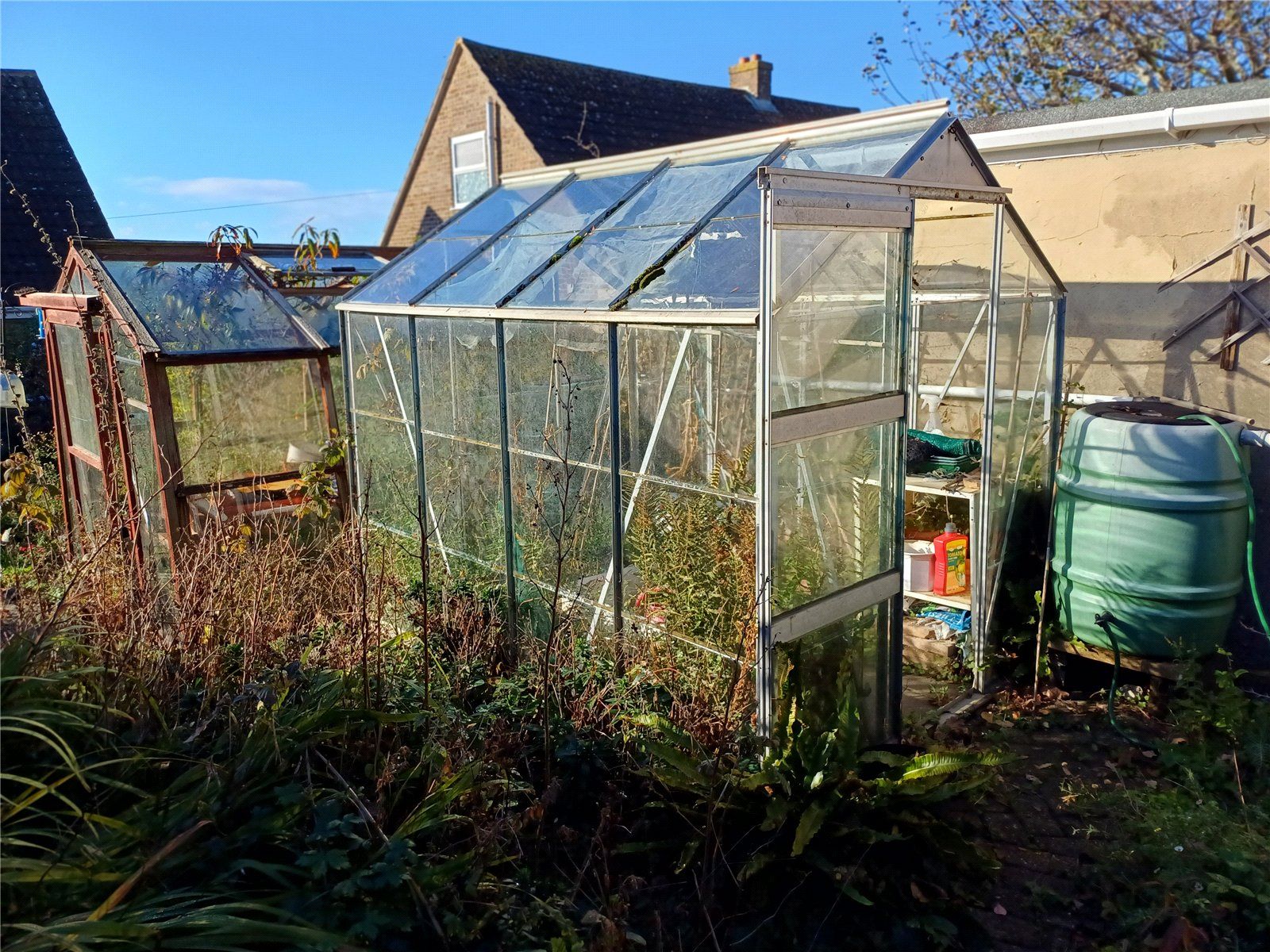 The rear gardens are wedge-shaped and well planted with flowers, shrubs and small trees including an Oak tree, Bramley and Russett apple trees and there are two greenhouses together with an arbour.