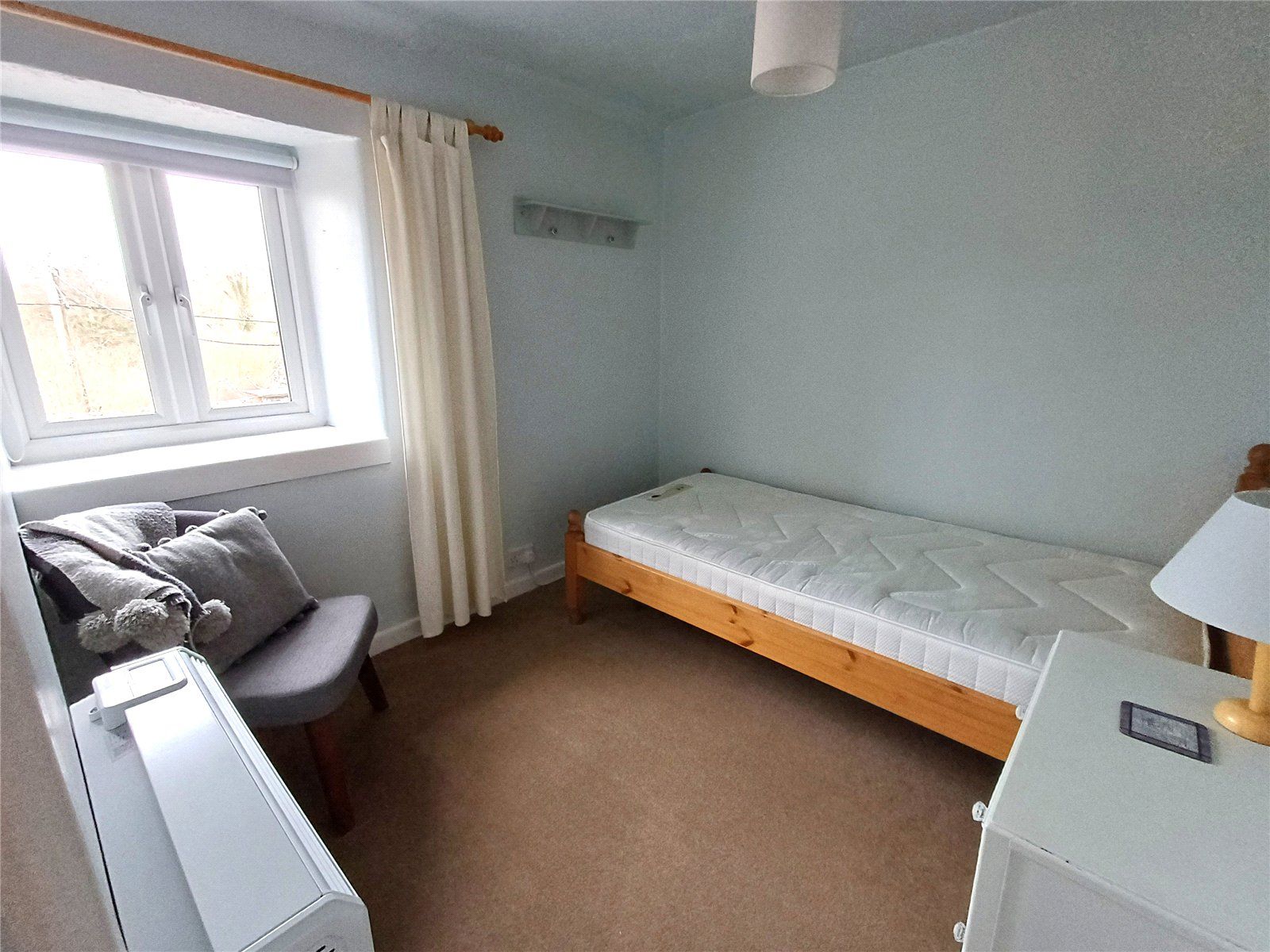 BEDROOM 2 with window to the west affording views to the wooded river glade adjoining the rear boundary, with deep sill/shelf. Modern Dimplex electric heater.