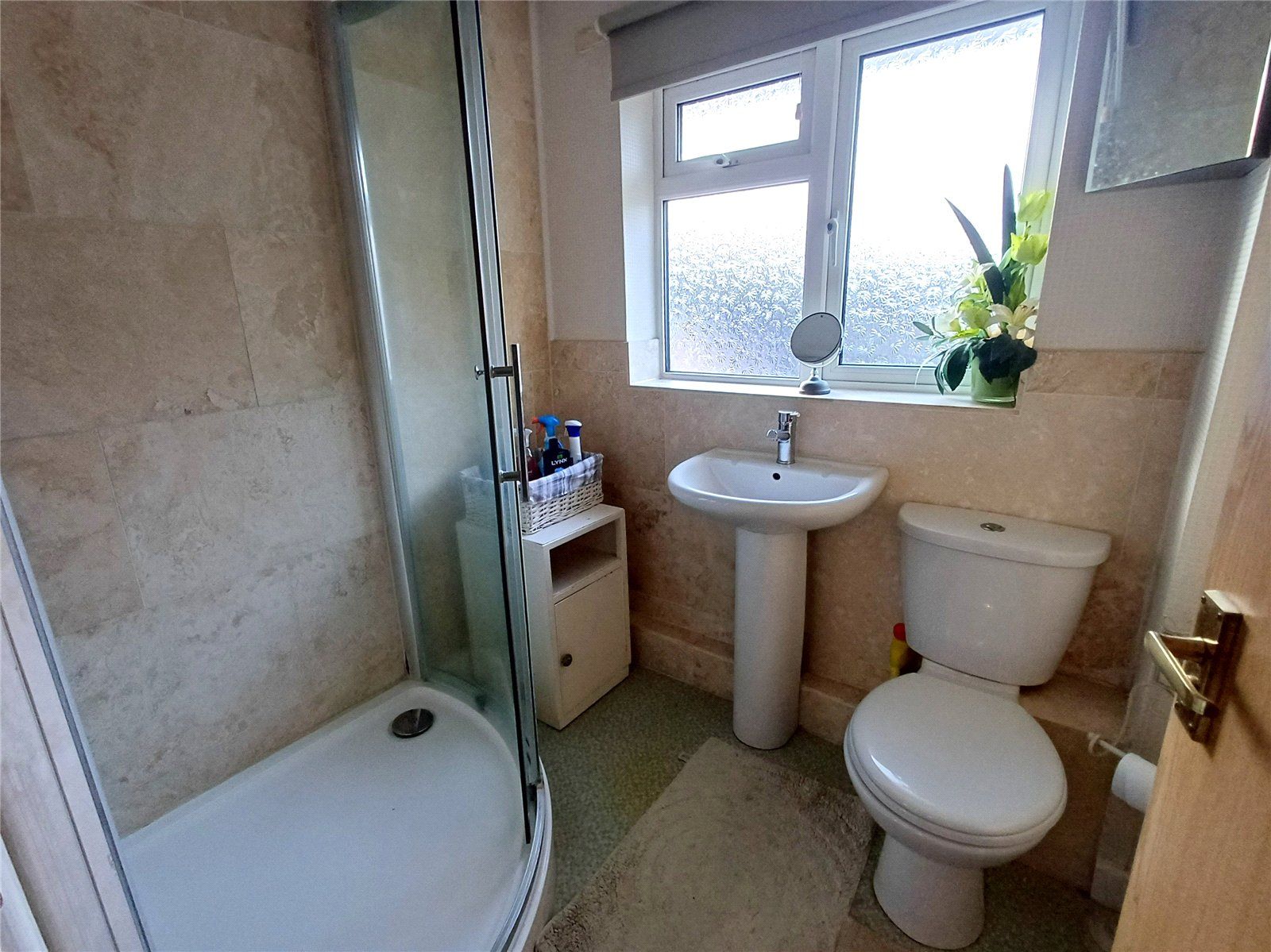 SHOWER ROOM re-fitted in 2014 with corner shower cubicle and shower unit directly off the mains, pedestal basin and low level WC together with heated towel rail and obscure-glazed window. Attractive tiled surrounds.
