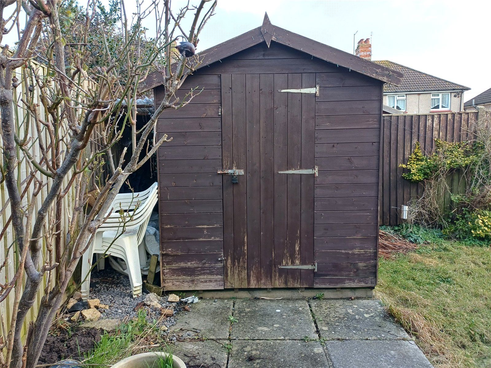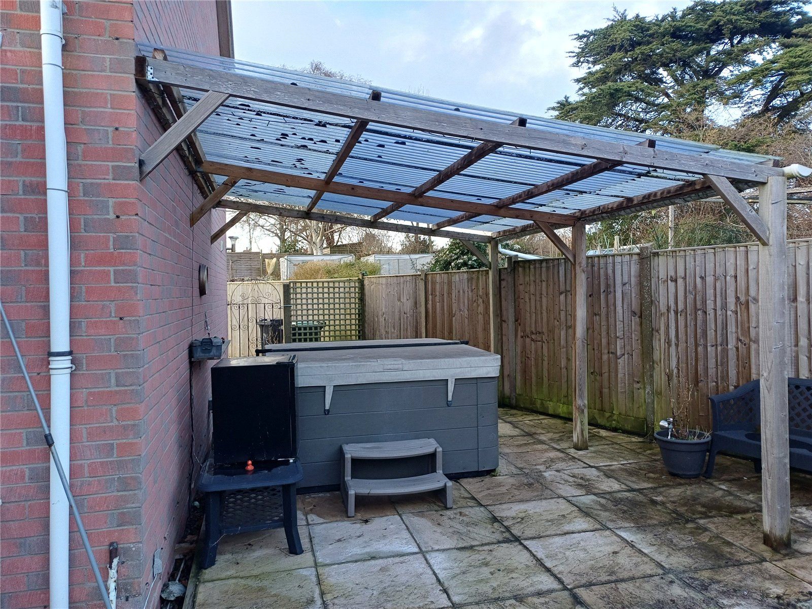 To the side is an attached perspex AWNING over the HOT-TUB TERRACE and the rear garden is well enclosed with wooden fencing and comprises a lawned area with paved area leading to the WOODEN SHED located in the north-east corner.